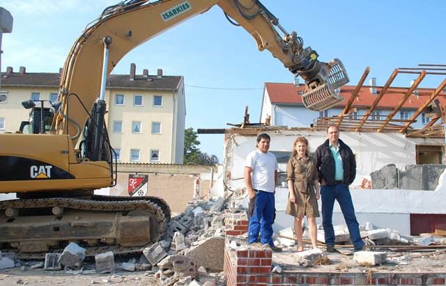 Die Abrissarbeiten am Vereinsheim-Gebäude des FC Eintracht am Landshuter Auerweg 8a sind in vollem Gange. Bekanntlich macht das stark in die Jahre gekommene Vereinsheim Platz für das Bürgerhaus Landshut, das an derselben Stelle von der Bürgerstiftung gebaut wird. Der Fußballclub wird dann mit einziehen. Die Unterwattenbacher Firma Isarkies GmbH & Co. KG sponsert das Projekt großzügig, indem sie den Abriss und die Entsorgung sowie die anschließenden Erdarbeiten in einem Gesamtvolumen von ca. 35.000 Euro komplett und kostenfrei übernimmt.