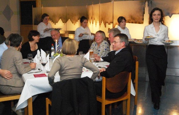 Stifterdinner 2: Hervorragend gelaunt ließen sich die Gäste im ausverkauften Speisesaal des Jugendwohnheims von den jungen Auszubildenden in Küche und Service verwöhnen.