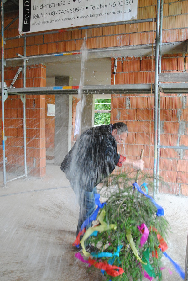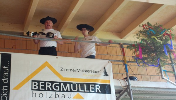 Dachstuhlsponsor Robert Bergmüller (links im Bild) sprach den Richtspruch und begann mit den Worten