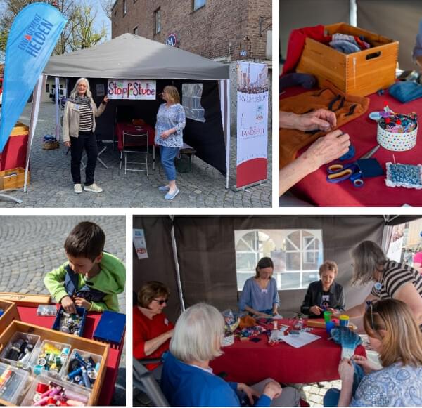 Die Bürgerstiftung beteiligte sich mit einer eigenen Aktion, der „Stopfstube“. Der Anspruch für die Aktionen war hoch. Wir wollten Kriterien wie Barrierefreiheit, Inklusion, Integration, Seniorenarbeit und nicht zuletzt Nachhaltigkeit abbilden. Das Projekt der Bürgerstiftung hat viele Kriterien umgesetzt: Nachhaltigkeit stopfen statt wegwerfen, Integration durch Profistopferinnen unterschiedlicher Nationalitäten, barrierefrei, - weil der Pavillon am Ländtor nicht zu übersehen offen und ebenerdig erreicht werden konnte, um stopfwürdige Kleidungsstücke zu reparieren.
